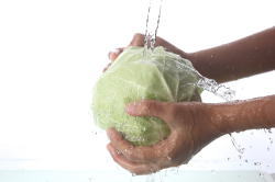 | 両手いっぱい 生野菜の量は、100g | 温野菜・・片手で持てる野菜の量で100g |